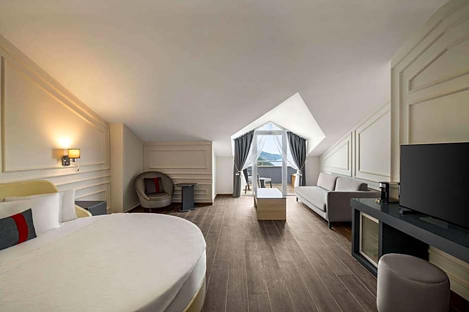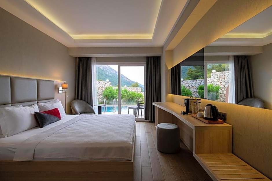 The pool with a view is a top feature of this double room. This air-conditioned double room is consisted of of a TV with streaming services, a private bathroom as well as a balcony with sea views. The unit has 1 bed.